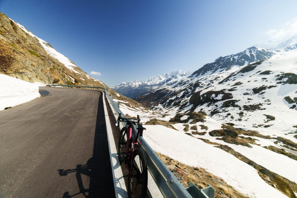I rode up to the pass from the Swiss side on bike, and had planned to visit the Italy side a bit. Unfortunately, as mentionned above, there was still much snow to cross. I could have done it on foot, carrying the bike, albeit being not fun, but there were snow miling machines working. So I decided it wasn’t a safe option.