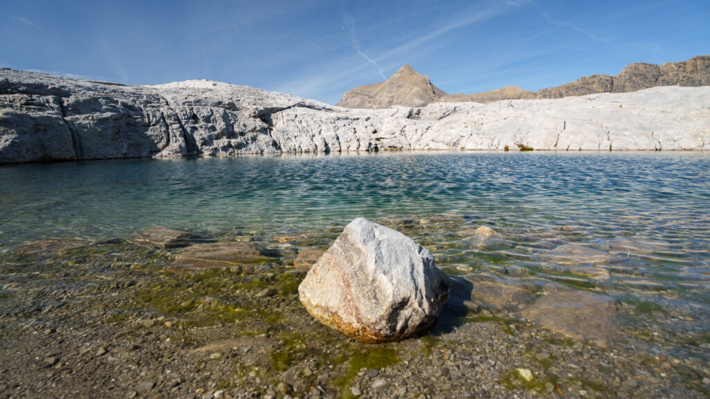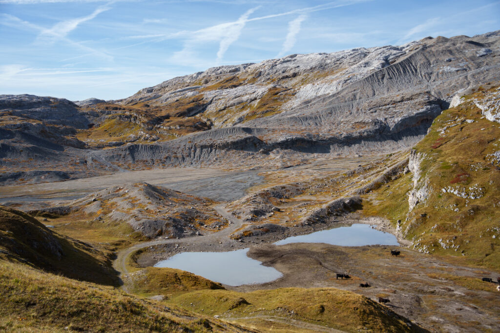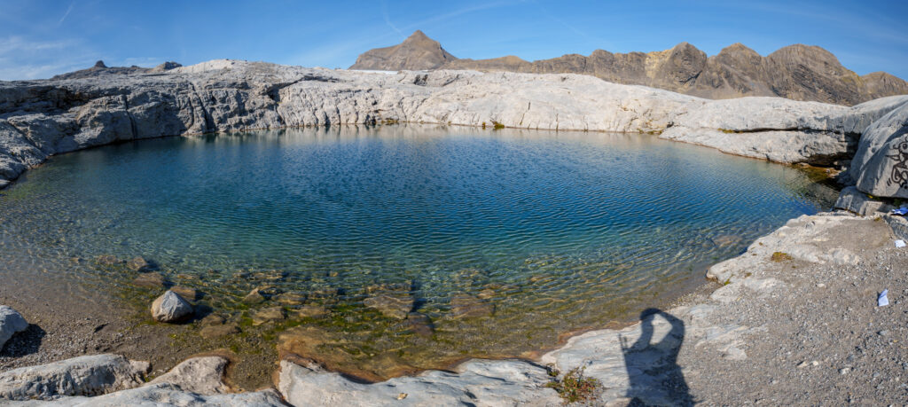 It’s quite a lunar landscape as we’re walking on lapies (limestone pavements) soon enough. I enjoy jumping from one stone to another, with the freedom to create my own path. My shoes don’t agree, though.