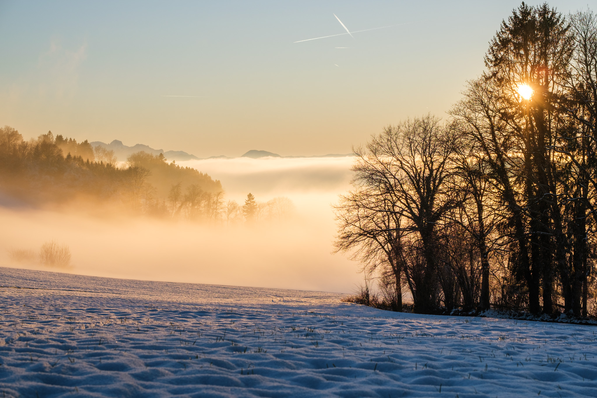 There is such a beautiful light around Christmas time as the sun is low. But we’re under a thick fog most of the time, thus one needs to travel above it.